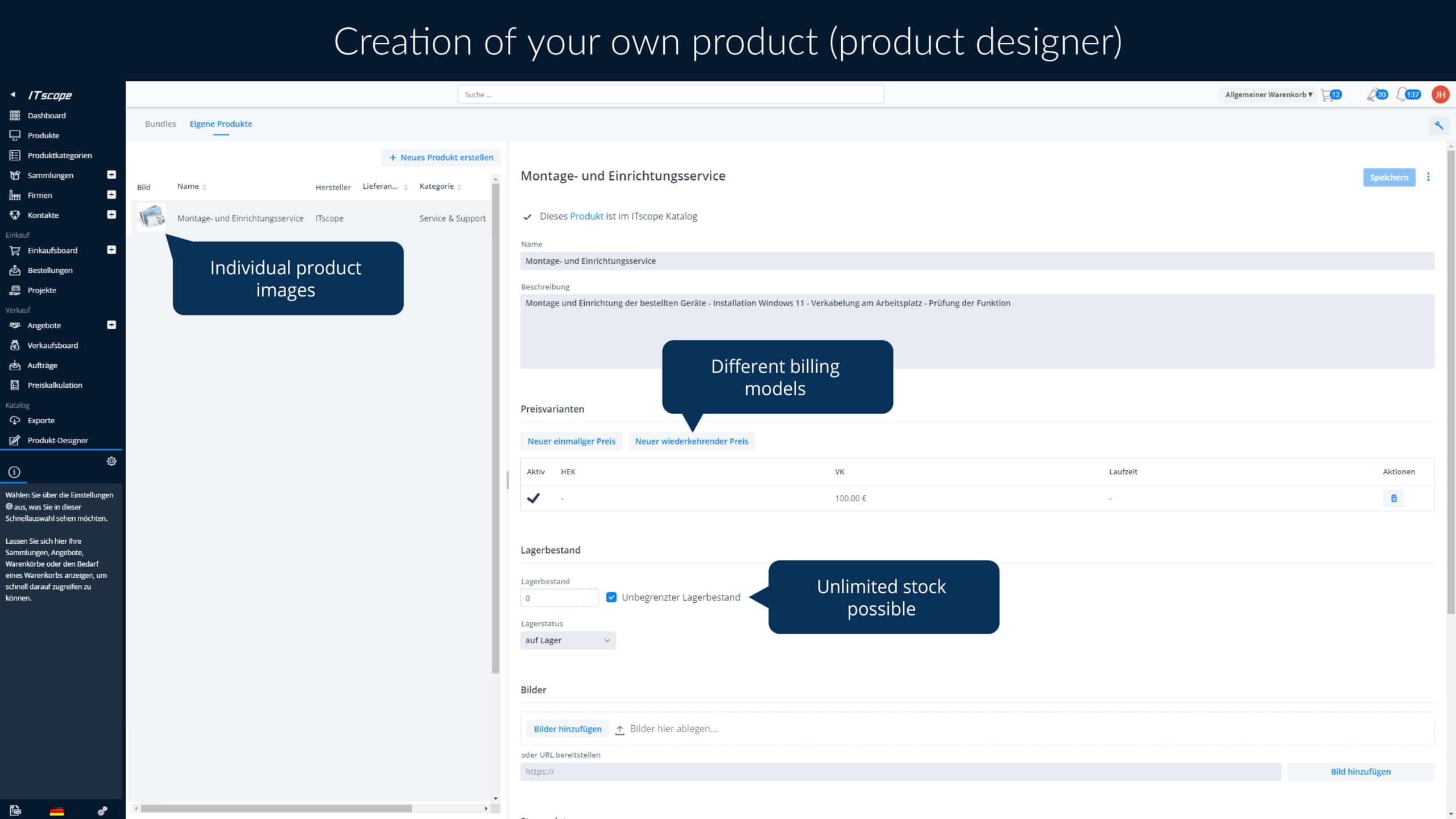 Create and bundle your own products & services