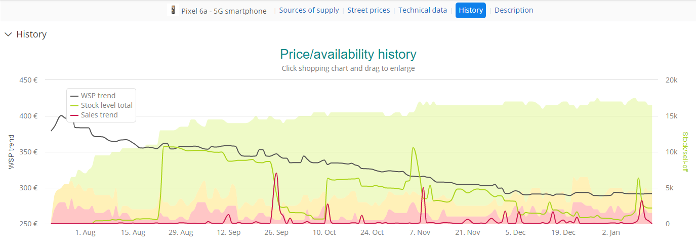 The WSP trend for the Google Pixel 6a has been steadily going downhill since August 2022.