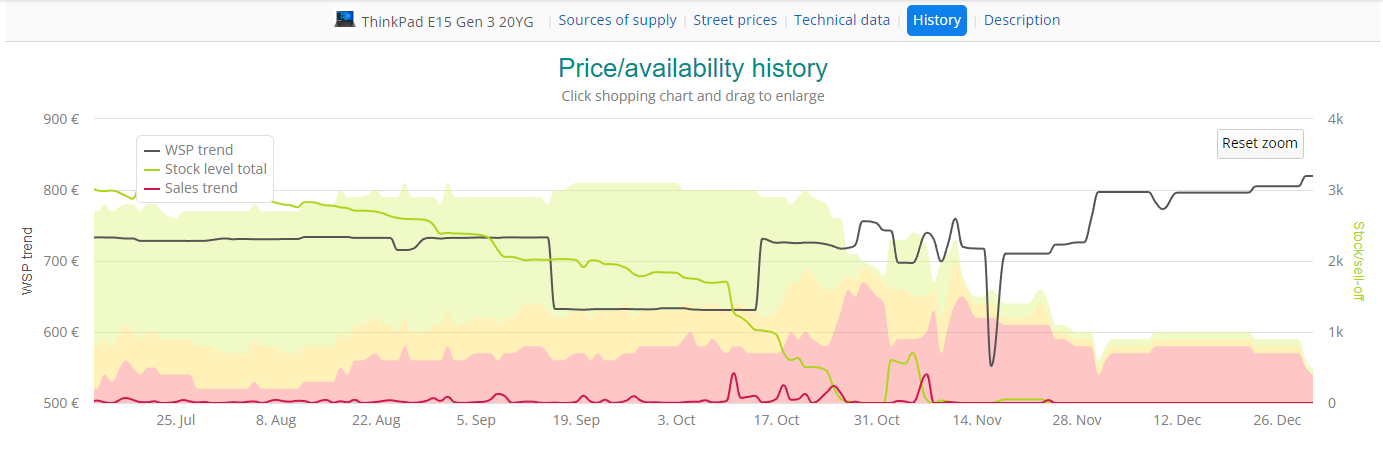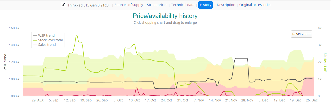 The stock availability of the Lenovo ThinkPad L15 Gen 3 21C3 also fluctuated at the end of the year 2022.