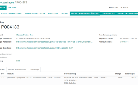 Aufträge aus Odoo in den ITscope Warenkorb übermitteln und optimieren