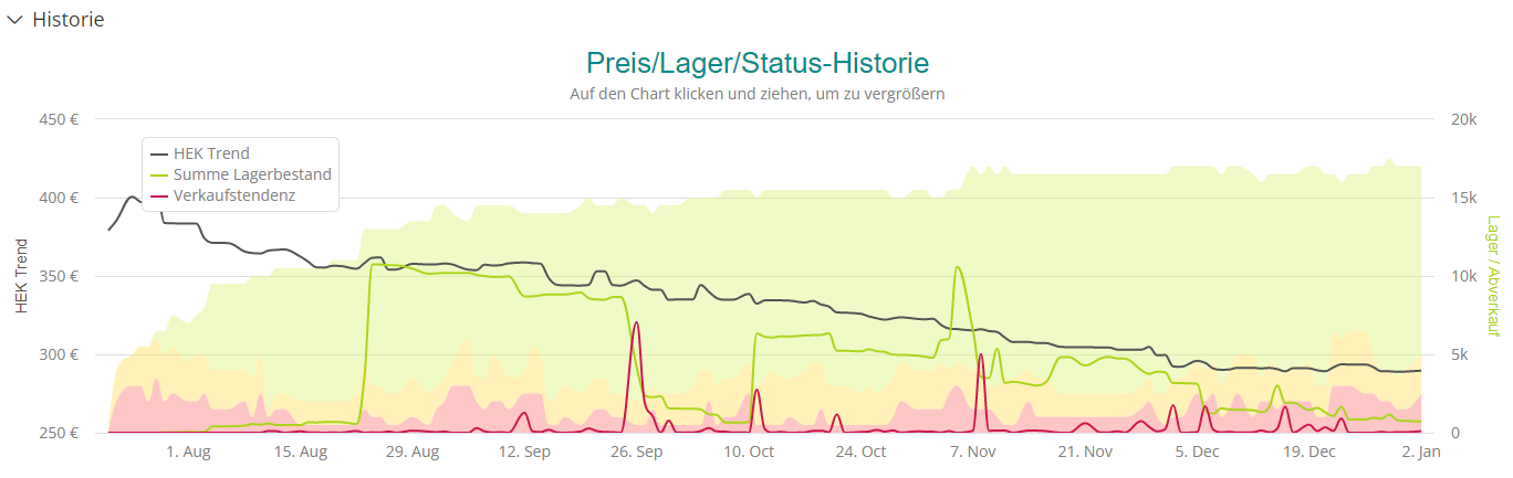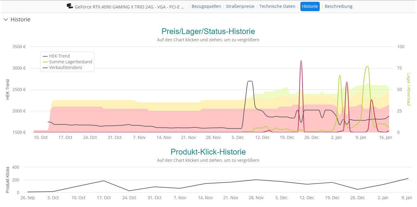 Der Händlereinkaufspreis (HEK) ist sowohl für die MSI 24GB D6X RTX 4090 Gaming X Trio als auch für die Gigabyte GeForce RTX 4090 Gaming OC bereits wieder deutlich niedriger als zum Verkaufsstart. Tatsächlich wur