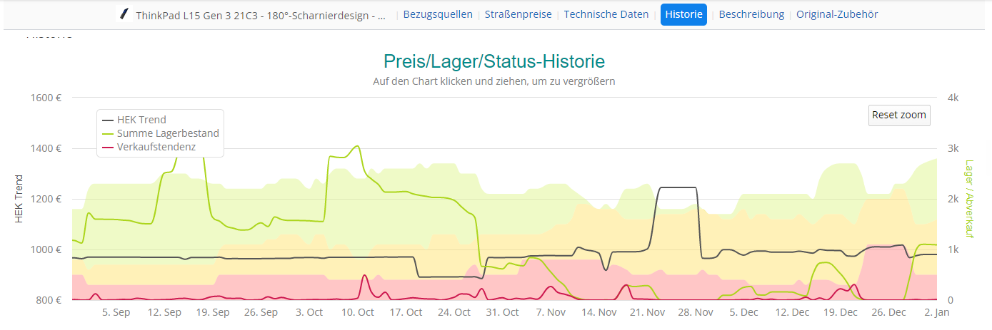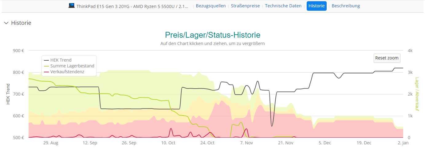 Auch beim Lenovo ThinkPad L15 Gen 3 20YG war der Lagerbestand Ende des Jahres wechselhaft.