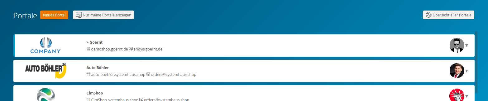 - Um B2B Suite Betreibern beim Verwalten ihrer Portale zu helfen und die Konfiguration dieser zu vereinfachen, wurde eine neue Portal Übersicht geschaffen. Betreiber können hier alle erstellten Shops betrachten und deren Konfiguration unabhängig voneinander betreten.