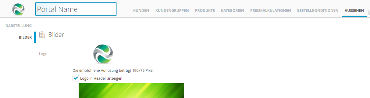 - Um die Portalkonfiguration besser zu strukturieren, wurden Darstellung und und Bilder in einen eigenen Tab ausgelagert und können nun unter „Aussehen“ aufgerufen werden.