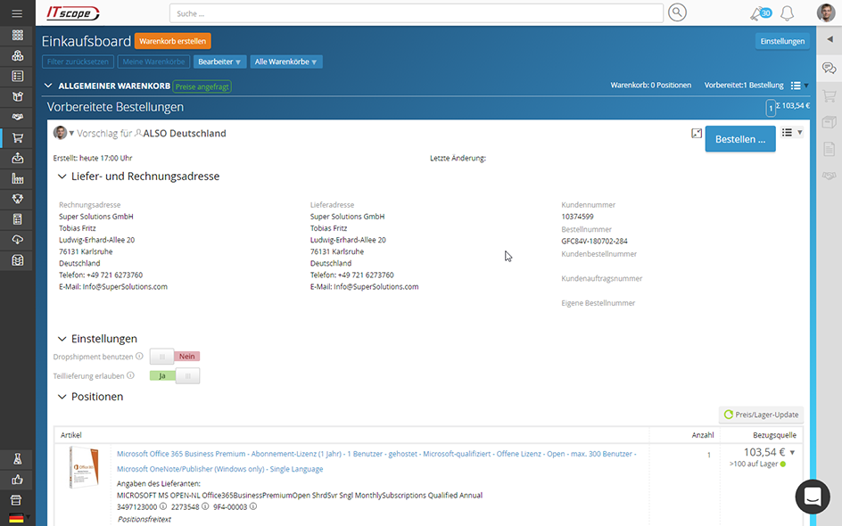 3. Nahtlose Integration: Direkt aus einem Angebot bestellen